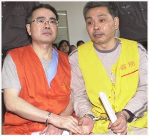 中午12時許,審判長宣布暫時休庭。當(dāng)被告被帶下法庭時,他們的家人急忙跟出法庭,請求允許給兩被告送些飯菜,被獲許。本案預(yù)計審理3天。