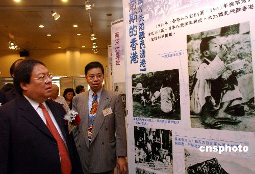 為紀(jì)念抗日戰(zhàn)爭(zhēng)勝利60周年,香港各界紀(jì)念抗戰(zhàn)勝利60周年活動(dòng)籌委會(huì)3日在中央圖書(shū)館舉辦《抗戰(zhàn)時(shí)期的香港》圖片展覽。立法會(huì)主席范徐麗泰在開(kāi)幕儀式上致辭。作者:譚達(dá)明