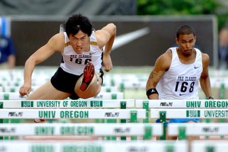 中新網(wǎng)6月5日電 東方網(wǎng)消息,今日凌晨,美國尤金當(dāng)?shù)貢r間6月4日下午13時揭幕的第31屆普雷方丹田徑精英賽可謂群英畢至,包括中國名將劉翔在內(nèi)的8名雅典奧運(yùn)金牌得主的參賽將使得俄勒岡大學(xué)的海沃德田徑場星光燦爛,5個奧運(yùn)項目金銀牌得主的再度對決掀起本賽季田壇的第一個高潮。在男子110米欄比賽中,令人期待的跨欄王子劉翔與老牌欄王約翰遜在本賽季的第一場對決以劉翔的勝利奪冠畫上句號。劉翔在比賽中跑出13.06秒的成績,不但刷新的本賽季的最好成績,也改寫了普雷方丹田徑精英賽的賽會紀(jì)錄。