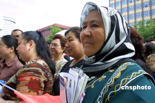 | 六月七日是全國(guó)普通高校招生考試第一天,在烏魯木齊一民族考點(diǎn)外,一位維吾爾族大娘手持高考招生資料,等待自己的孩子順利完成第一門考試。據(jù)悉,二零零五年新疆報(bào)考普通高?忌_(dá)十二點(diǎn)八萬(wàn)人,其中少數(shù)民族考生近五萬(wàn)人,再創(chuàng)歷史新高。作者:劉新