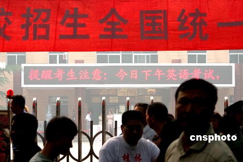 圖:鄭州高考考場專為考生設(shè)置電子屏