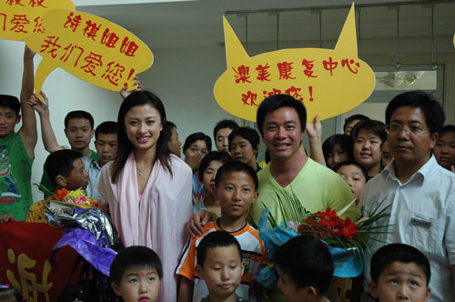 中新網6月8日電 6月7日,香港著名導演唐季禮與2004屆鳳凰衛(wèi)視“中華小姐環(huán)球大賽”冠軍李詩琪一天內奔走于津、京兩地的中國醫(yī)學科學院血液病醫(yī)院和北京澳美聽力語言研究中心之間,探訪那里的白血病患兒和耳聾的小朋友,呼吁整個社會對這些需要幫助的孩子的關愛。
