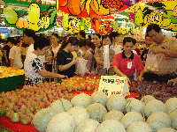 在漳州市區(qū)主會場的新華都購物商場,記者看到,鮮紅的芒果、金黃的鳳梨、黑里透紅的蓮霧、晶瑩剔透的楊桃等臺灣名優(yōu)水果一上貨架,立即吸引了許多正在購物的民眾。大家爭著一睹臺灣名優(yōu)水果的“風(fēng)采”,有的還買了一些回去嘗嘗鮮。