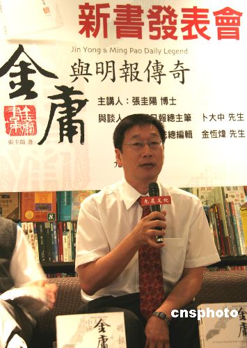 六月九日,《金庸與明報傳奇》一書正式在臺灣發(fā)行。該書作者、曾任《明報》主力執(zhí)筆之一的張圭陽專程自香港飛抵臺北,向讀者介紹創(chuàng)作心得。作者:許曉青