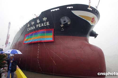 “中華和平”號(hào)是臺(tái)灣船東直接在祖國大陸訂造的第一艘船。十年前,因海峽兩岸無法實(shí)現(xiàn)直接的經(jīng)貿(mào)往來,臺(tái)灣遠(yuǎn)東倉儲(chǔ)公司曾通過日本三菱商社,間接地向江南造船廠訂造了一艘七萬噸級(jí)巴拿馬型散貨船“遠(yuǎn)涵”號(hào)。二00三年六月,在上海外高橋造船公司成功交付第一艘出口船即香港泰昌祥航運(yùn)公司訂造的十七點(diǎn)五萬噸好望角型散貨船“祥瑞”號(hào)之際,“中國航運(yùn)股份有限公司”于四日內(nèi)連續(xù)向該船廠訂造了兩艘同型船,今天命名交付的“中華和平”號(hào)便是其首制船,揭開了海峽兩岸航運(yùn)業(yè)和造船業(yè)在新世紀(jì)共同發(fā)展、繁榮的嶄新一頁。