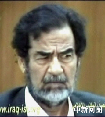 6月13日公布的伊拉克前總統(tǒng)薩達姆在一不明地點接受質(zhì)詢的電視照片。伊拉克特別法庭表示,一名法官已向薩達姆提出質(zhì)詢,調(diào)查一什葉派穆斯林聚居的村莊里數(shù)十名男子被殺害事件。1982年,薩達姆曾在該村逃過一次暗殺。