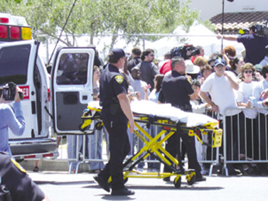 警官阿斯特受訪時(shí)說,為防止發(fā)生意外,所有現(xiàn)場(chǎng)的執(zhí)勤警官都配備了電擊槍、警棍、芥子氣、塑料手拷等防暴裝備。所幸在陪審團(tuán)宣布杰克遜無罪后,“粉絲”們雖欣喜若狂,但無人鬧事,讓警方松了口氣.
