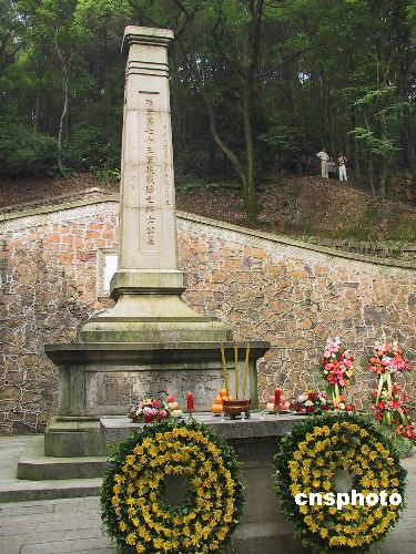 | 為紀(jì)念抗日戰(zhàn)爭勝利六十周年,曾是抗日戰(zhàn)場的風(fēng)景名勝地長沙岳麓山正在積極修繕陸軍第七十三軍抗戰(zhàn)陣亡將士公墓、清風(fēng)峽作戰(zhàn)指揮部、警察紀(jì)念堂、長沙會戰(zhàn)碑、陣亡將士名錄碑、古炮臺及戰(zhàn)壕遺址六處抗戰(zhàn)歷史遺跡,緬懷先烈。圖為由蔣介石題詞的陸軍第七十三軍抗戰(zhàn)陣亡將士公墓。作者:劉雙雙
