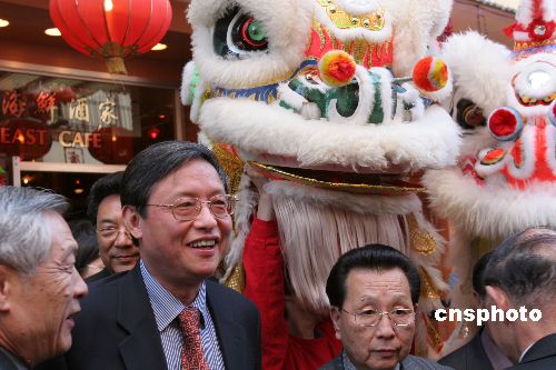 中國新任駐美大使周文重六月十八日拜訪舊金山華埠,當(dāng)?shù)厝A人舞龍舞獅歡迎。作者:劉丹