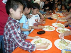 據(jù)美國僑報(bào)報(bào)道,當(dāng)天的“巴結(jié)老爸”活動(dòng)上,主辦單位特地為老爸們制作的“愛心炒飯”節(jié)目吸引了不少小朋友報(bào)名參加,來自35個(gè)家庭的數(shù)十名華裔少年兒童將展示臺(tái)擠得水泄不通,有的是兄妹上陣,有的是姐弟聯(lián)手,親手為爸爸作出一份充滿愛心和童心、美味可口的別致炒飯。父親節(jié)前夕獲得這樣一份精心制作的禮物,讓現(xiàn)場眾多的老爸們笑得嘴都合不攏。