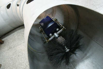 另外,相對于200mm以下矩形管道的國際水平,新研制的機器人可用于高度150mm以下的矩形管道和直徑250mm以上的圓形管道,適用于小口徑管道檢測、空調(diào)管道清洗消毒。而且能跨越管內(nèi)的階梯管、錐形管接口、變截面形狀管接口,輕松實現(xiàn)直角方管轉(zhuǎn)向和90度圓弧彎管行走,勝任任何復(fù)雜的管道環(huán)境系統(tǒng)。