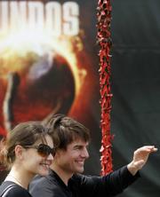 影星湯姆克魯斯(Tom Cruise)6月21日與訂婚女友凱蒂荷姆斯(Katie Holmes,左)一同出席電影《世界大戰(zhàn)》(又譯強(qiáng)戰(zhàn)世界,War of the Worlds)在馬德里的首映會,該片將自6月29日上映。阿湯哥于17日選在浪漫的巴黎艾菲爾鐵塔向凱蒂求婚,結(jié)束外界對兩人是否有意結(jié)婚的臆測。(圖片來源:路透社 記者:Susana Vera )