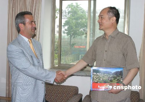 6月23日,國(guó)務(wù)院僑辦副主任趙陽(yáng)會(huì)見瑞士提起諾州美利德市“微縮瑞士”公園園長(zhǎng)Dominique Vuigner先生。中國(guó)深圳著名的“錦繡中華”公園與已有五十年歷史的瑞士提州“微縮瑞士”,通過國(guó)僑辦介紹結(jié)成友好園區(qū),將開展中瑞微縮景區(qū)建設(shè)、工藝、管理及旅游方面的交流與合作。作者:田地