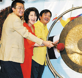昨天蔡琴當(dāng)起了媒婆,帥哥律師謝震武擔(dān)任見證人,見證果陀劇團(tuán)與大陸上海星世代娛樂公司結(jié)緣。蔡琴與果陀藝術(shù)總監(jiān)梁志民,還有上海星世代娛樂董事長(zhǎng)徐毅簽約,將“跑路天使”引進(jìn)內(nèi)地,新名稱“跑路救天使”引起大陸一陣狂熱,北京、上海共5場(chǎng)演出,目前已經(jīng)開放售票,據(jù)了解,票房比蔡琴去年的個(gè)唱還暢銷,而4萬人次的演出也將挑戰(zhàn)蔡琴的身體狀況。蔡琴表示,由于視力不佳,她無法與舞臺(tái)上的其它演員直接對(duì)戲,所以必須彩排更多次,一個(gè)人不斷重復(fù)練習(xí),將所有的走位及對(duì)話統(tǒng)統(tǒng)都背起來,比起一般正常情況下演出,更加辛苦,蔡琴開玩笑說:“我的票價(jià)要調(diào)漲啦!”