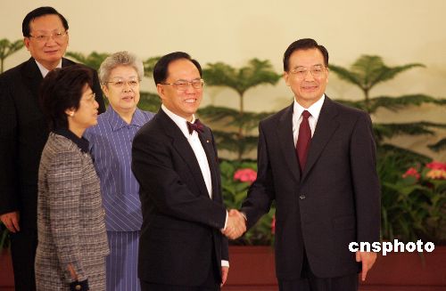 香港特區(qū)行政長(zhǎng)官曾蔭權(quán)六月二十四日在北京人民大會(huì)堂香港廳宣誓就職,國(guó)務(wù)院總理溫家寶、副總理吳儀、國(guó)務(wù)委員唐家璇等出席就職儀式。作者:毛建軍