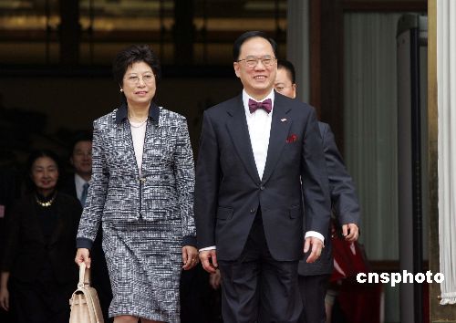 圖:曾蔭權(quán)宣誓就職后喜氣洋洋走出人民大會堂