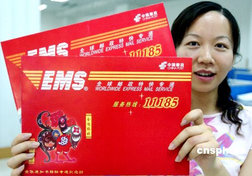 2005年6月28日,河南省啟用由中國郵政發(fā)行的2005年高考錄取通知書專用特快專遞信封。這種專遞信封采用喜慶的大紅顏色和傳統(tǒng)的“金雞報(bào)曉”的圖案為考生送去喜訊。作者:馬健