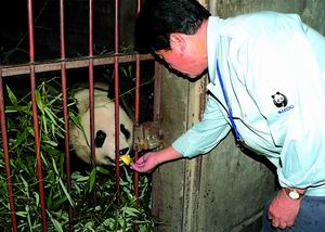 來到北京動物園近一個月,淺見和其他飼養(yǎng)員一樣,在熊貓館打掃衛(wèi)生,給熊貓清洗食物。由于熊貓對他還不是很熟悉,所以他只能隔著鐵欄桿給熊貓喂食,以防發(fā)生危險。淺見說,他與熊貓“結(jié)緣”,要追溯到十多年前,1988年第一次在中國看到熊貓后,他就喜歡上了它:“熊貓是世界上最可愛的動物。”