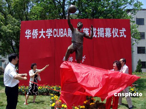 | 七月二日上午,由華僑大學(xué)香港校友會捐贈給母校的CUBA標(biāo)志性雕塑揭幕儀式在該校的春華園內(nèi)舉行。據(jù)雕塑的設(shè)計(jì)者——華僑大學(xué)藝術(shù)系孫德明老師介紹,該雕塑由華僑大學(xué)香港校友會捐資十三點(diǎn)五萬元,歷時一個多月建造的。雕塑高三點(diǎn)四米,以華大學(xué)生為原型,設(shè)計(jì)成具像、動態(tài)的單手投籃的動作,體現(xiàn)了當(dāng)代大學(xué)生積極向上、拼搏的精神風(fēng)貌。作者:石勇