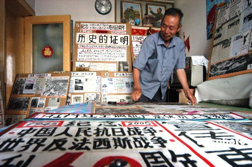 圖:黑龍江一老人舉辦抗戰(zhàn)勝利60周年展覽