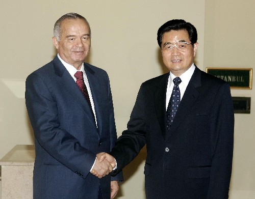 中新網(wǎng)7月5日電 據(jù)人民網(wǎng)報(bào)道,5日下午,中國(guó)國(guó)家主席胡錦濤會(huì)見了前來出席上海合作組織峰會(huì)的烏茲別克斯坦總統(tǒng)卡里莫夫。