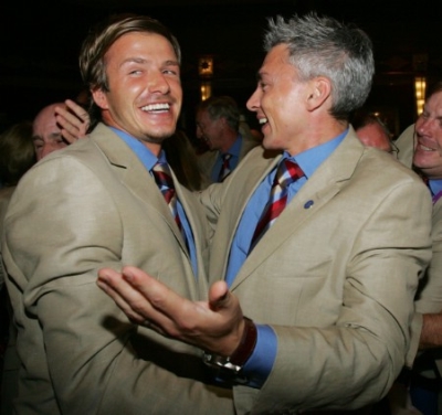 在得知倫敦申辦奧運會成功后,英格蘭隊隊長大衛(wèi)·貝克漢姆和奧運會金牌得知愛德華茲一起慶祝。經(jīng)過四輪的投票,倫敦在最后一輪中以54比50擊敗了巴黎,獲得奧運會的主辦權。圖據(jù)路透社