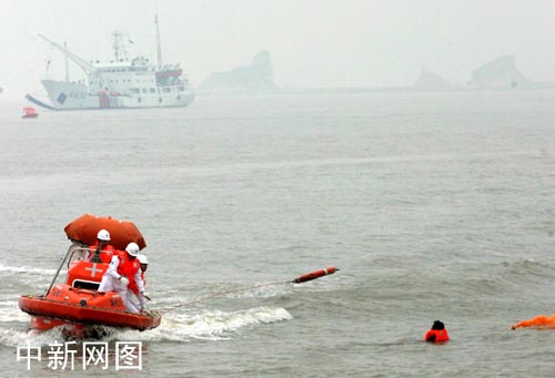 中新網(wǎng)7月7日電 7日上午10時(shí)51分,2005年?yáng)|海聯(lián)合搜救演習(xí)正式拉開(kāi)序幕。這是一次參演科目最多、參與隊(duì)伍最廣、救助力量最強(qiáng)的海上綜合演習(xí)。
