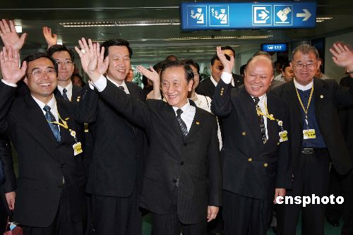 臺灣新黨主席郁慕明率領(lǐng)的新黨“民族之旅”訪問團七月七日下午抵達南京,在機場受到熱烈歡迎。作者:毛建軍