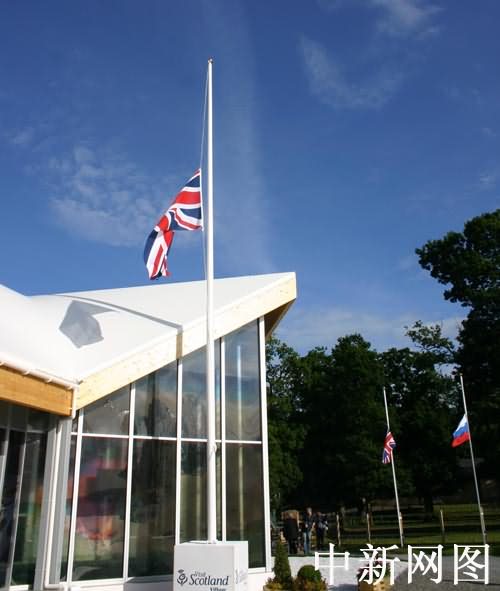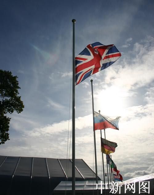 圖為八國集團為爆炸事件罹難者降半旗致哀。