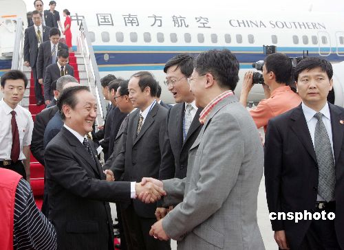 新黨主席郁慕明率領(lǐng)的臺(tái)灣新黨“民族之旅”訪問(wèn)團(tuán)七月八日下午抵達(dá)大連,在機(jī)場(chǎng)受到當(dāng)?shù)嘏_(tái)商代表的熱情迎接。作者:毛建軍