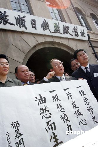 圖:郁慕明參觀旅順日俄監(jiān)獄舊址并題字