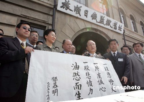 新黨主席郁慕明率領(lǐng)的臺(tái)灣新黨“民族之旅”訪問團(tuán)七月九日在大連參觀旅順日俄監(jiān)獄舊址,并題字“一段悲慘史,一片虔誠心,一股悲憤力,油然而生”。作者:毛建軍