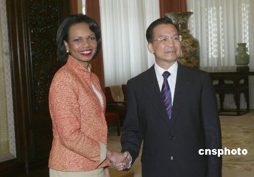 溫家寶會(huì)見賴斯稱:中國不會(huì)干涉和威脅任何國家