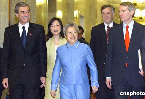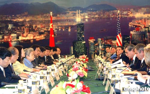 中國國務(wù)院副總理吳儀與美國商務(wù)部長古鐵雷斯進行會談。作者:廖文靜