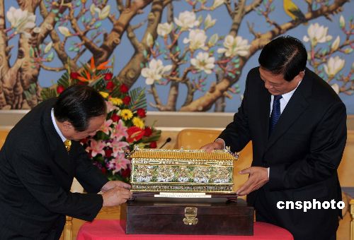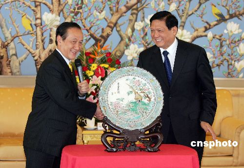 圖:劉淇與郁慕明互贈(zèng)禮品