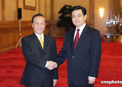中新網(wǎng)北京7月12日電(記者邢利宇)自人民大會堂現(xiàn)場報道:今天下午三時許,中共中央總書記胡錦濤在人民大會堂會見了由新黨主席郁慕明率領的新黨紀念抗戰(zhàn)勝利六十周年大陸訪問團。(完)