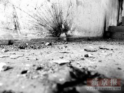 昨天下午,事發(fā)現(xiàn)場(chǎng)被炸的情景還保留著。爆炸的地點(diǎn)位于第303干部學(xué)校宿舍樓一樓的樓道門口,在樓道里遍地都散落著土屑和被震落的墻皮。在樓道東墻和西北墻角上共有3處爆炸物爆炸時(shí)留下的黑色痕跡。樓道的南墻被炸開一條長(zhǎng)三四十厘米、寬約一厘米的裂縫。