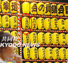 中新網(wǎng)7月15日電 據(jù)日本共同社報道,日本首相小泉純一郎為從13日開始的靖國神社主辦的廟會供奉了1萬日元的燈籠費,寫有小泉名字的燈籠懸掛在廟會上。