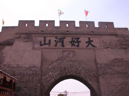 大境門門墻高12米,底長(zhǎng)13米,寬9米,有木質(zhì)鐵皮大門兩扇。門楣上“大好河山”四個(gè)大字由當(dāng)時(shí)的察哈爾都統(tǒng)高維岳書寫。