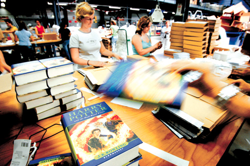 隨著第六集公開發(fā)售的時刻臨近,哈利波特狂熱周五席卷美國。預料約四百萬人午夜將會聚集在全國各地五千多家計劃舉行新書發(fā)售派對的書店。網上書店亞馬遜銷售部經理勞拉.波爾科說:“我們對此早有準備,因為以前已經經歷過!敝林芩臑橹,亞馬遜在美國國內已經接到近九十萬個定購。這個數字打破○三年六月《哈利波特》第五集發(fā)售時的七十八萬九千個定購的紀錄。