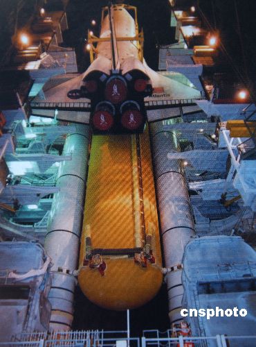 美國(guó)航天飛機(jī)“發(fā)現(xiàn)號(hào)”七月十六日仍在肯尼迪航天中心解決燃料傳感器故障,故障一旦解決,就重新啟動(dòng)四天的發(fā)射倒計(jì)時(shí)。(美國(guó)太空總署供圖)