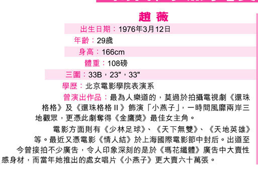 趙薇與黃奕在演藝路上,可謂甚有淵源,兩人先后飾演瓊瑤筆下《還珠格格》的“小燕子”角色,近期則一同演繹三十年代女性,黃奕演出電視版《長恨歌》、趙薇則演出電視劇《京華煙云》;及至下月,兩人更會“撞到正”齊齊推出個人大碟,雖然要到推出時才知鹿死誰手,但在情場上兩人已率先較量,看來能在公眾場合拖手的“新歡”黃奕勝算較大!