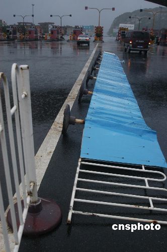 7月18日17時30分左右,“海棠”風(fēng)暴將福州至泉州高速公路入口處的隔欄掀翻在地。作者:鄭祚聲