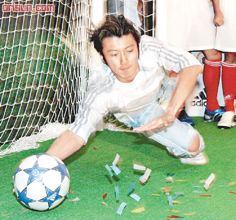 除了做守門員外,霆鋒還和港隊(duì)球員一同切磋控球技術(shù),相比起一班專業(yè)港隊(duì)球員,霆鋒表現(xiàn)總算不過不失,他表示:“我手同腳都未好,加上我其實(shí)不會(huì)踢球,一年都是踢一兩次,頭球射龍門真是好難擋,因?yàn)檎媸呛每。?/p>