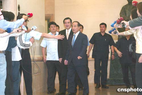 七月二十日,中國國民黨中常會(huì)在臺(tái)北國民黨中央黨部舉行,馬英九和王金平一同出席。這是王、馬兩人在國民黨主席選舉后首次見面,倍受媒體關(guān)注。作者:盛佳鵬