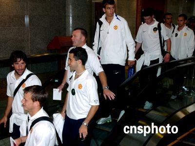 英超豪門曼聯(lián)隊(duì)昨日抵達(dá)北京,開始他們的中國之行。在未來的幾天中,他們將與中國的球迷以及媒體見面,并將與北京現(xiàn)代隊(duì)進(jìn)行一場(chǎng)友誼賽。圖為曼聯(lián)球星抵達(dá)北京,興致勃勃。