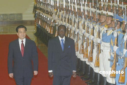 圖:胡錦濤歡迎津巴布韋總統(tǒng)穆加貝訪華