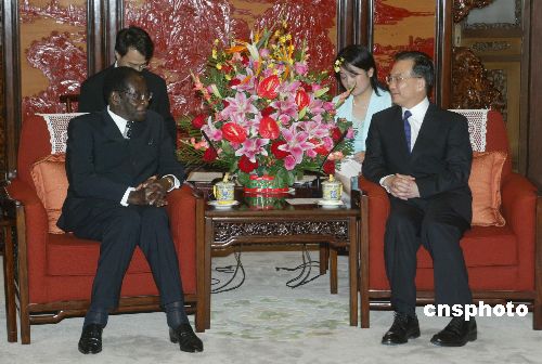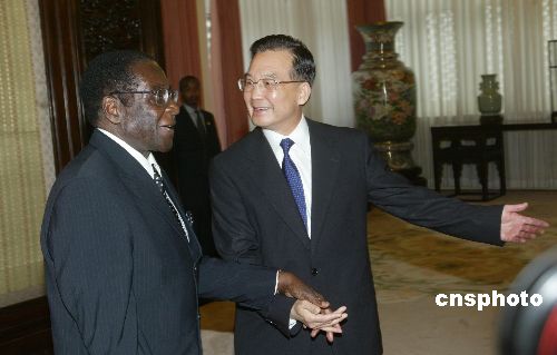 圖:溫家寶會(huì)見(jiàn)津巴布韋總統(tǒng)穆加貝