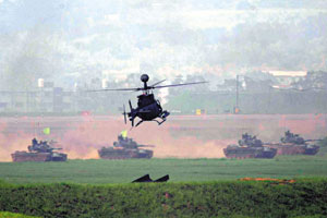 中新網(wǎng)7月28日電 臺(tái)軍“漢光21號(hào)”演習(xí)27日在臺(tái)中空軍清泉崗基地舉行,除陳水扁、呂秀蓮和謝長(zhǎng)廷都到場(chǎng)外,美國(guó)國(guó)防情報(bào)局官員及日本退役人員也出現(xiàn)在觀禮臺(tái)上。
