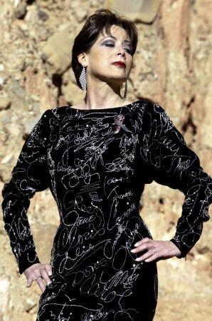 | 玻利維亞服裝設計師帕提諾(Beatriz Canedo Patino)7月26日在拉巴斯親自穿著作品“好萊塢涂鴉裝”展示,衣服上有她與全球近400位名女人的簽名。這件禮服在24年前制作,用來呼吁各國女性團結(jié)對抗愛滋病。衣服上用白金與水晶珠煉繡著穿過這件衣服的女士姓名,包括德蕾莎修女、小野洋子與凱薩琳赫本(Katharine Hepburn)等。帕提諾是最后一個在這件衣服上加上簽名的人。她因為愛用Alpaca羊毛,自稱Alpaca皇后。這件衣服將在最后一次全球巡回展后拍賣,以對愛滋病防治做出最后的貢獻。(來源:路透/David Mercado)